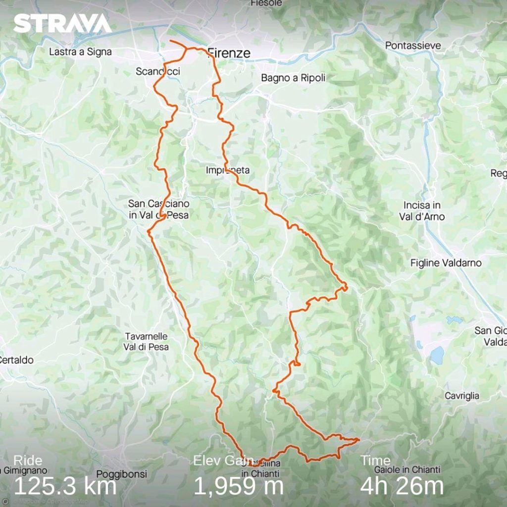 From Castellina its only 40km back to Florence and the terrain is simply a dream. 3 long downhills on silky smooth asphalt and only one gentle climb to the town of San Casciano. 116km with 1600m of vertical and back in the house in time to feed the cat before making a hearty pasta lunch. Riding a bike doesn’t get much better than this and if you are ever in the area I can drop the tcx file or feel free.