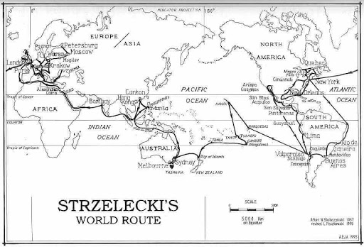 Strzelecki then travelled Tasmania (or Van Diemen’s Land as it was then known) for two years, discovering coal while he was there, before returning to Australia. He eventually set sail back to England in 1843, managing to squeeze in further expeditions in China, the East Indies and Egypt on his way back. On his return he published his findings to great acclaim from the scientific community. His snappily-titled Physical Description of New South Wales and Van Diemen’s Land won him praise from Charles Darwin himself, and was awarded the Gold Medal of the Royal Geographical Society.