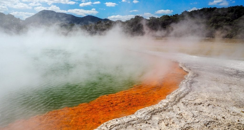 >Exploring the geothermal wonderland around Rotorua with its geysers, fantastically coloured steaming pools and bubbling mud pools.