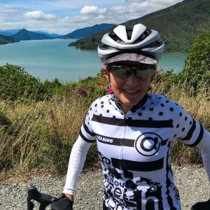 >Cycling along the rolling coastline of Queen Charlotte Sound.
